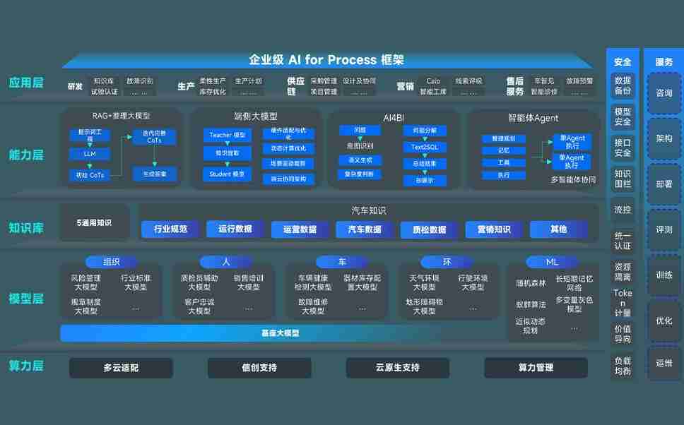 尊龙时凯问学智车解决方案是一套基于AI技术的汽车行业智能化系统,,,,覆盖从底层算力到顶层AI应用的全栈方案。。。。方案由算力层、、模型层和应用层组成:算力层,,,方案支持多种一体机配置,,具备云端灵活部署、、、、多云适配以及动态优化计算资源的能力;模型层,,,尊龙时凯问学平台版提供了企业级AI应用一站式构建与管理平台,,支持基于后训练强化技术的汽车企业专属模型的训练、、评测和运营;应用层,,,尊龙时凯问学DeepSeek版提供包括超级员工、、智能招采、、、智能营销、、智能客服、、、AI for BI等一系列解决方案,,可助力汽车行业实现数字化转型,,,让管理更智能、、响应更敏捷。。。